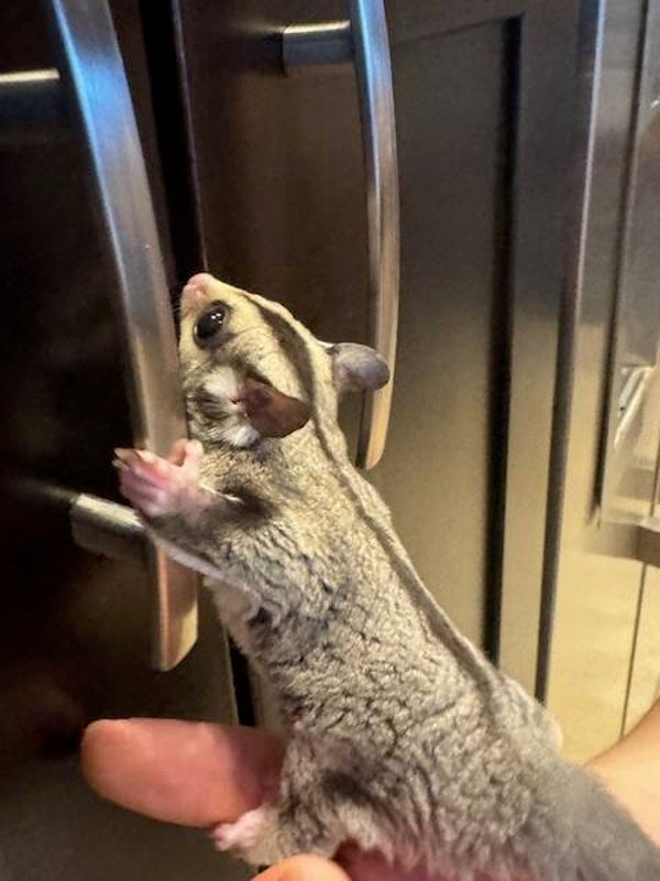 He’s playful, curious, and already practicing his sugar glider ninja skills (with a few crash landings, but hey — he's learning!). Snuggles? Yes. Snacks? Always. Trouble? Just a little.